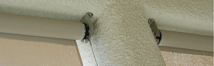- Most inside mounts on stucco patios require strap brackets which ensure installation to wood higher up on the beam.